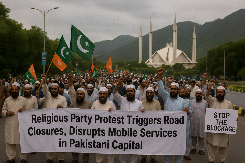 Religious party protest triggers road closures, disrupts mobile services in Pakistani capital